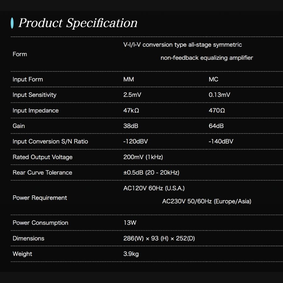• Input Equivalent S/N Ratio –120 dbV (MM) / –140 dBV (MC)