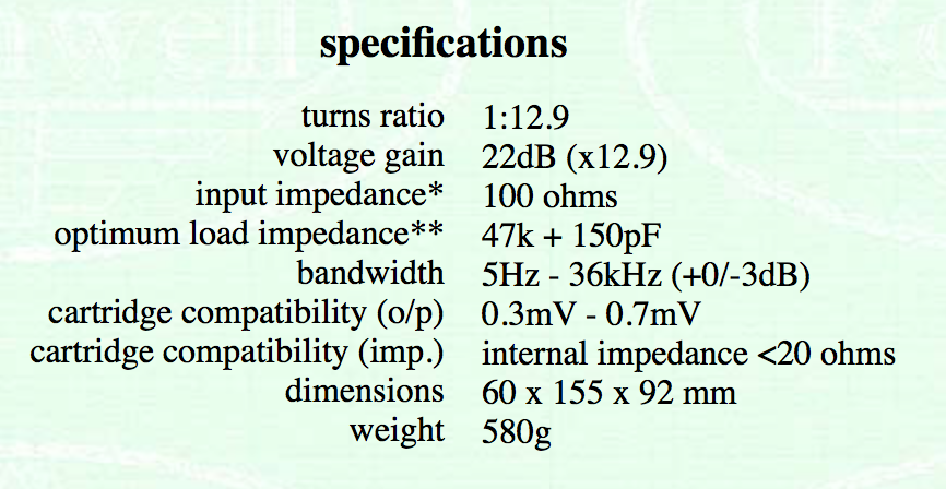 ** This is the optimum load for the transformer, is the input impedance of the phonostage that the MC1 feeds into.