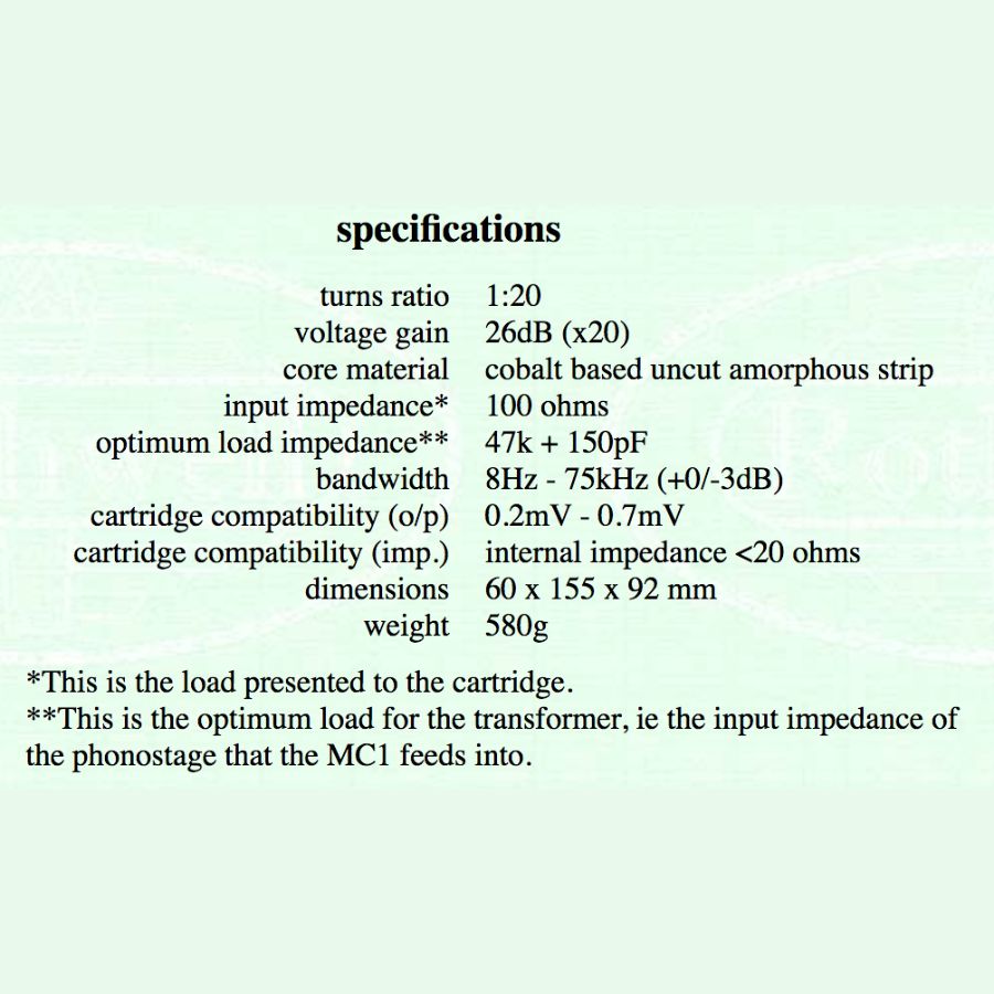 ** This is the optimum load for the transformer, is the input impedance of the phonostage that the MC1 feeds into.