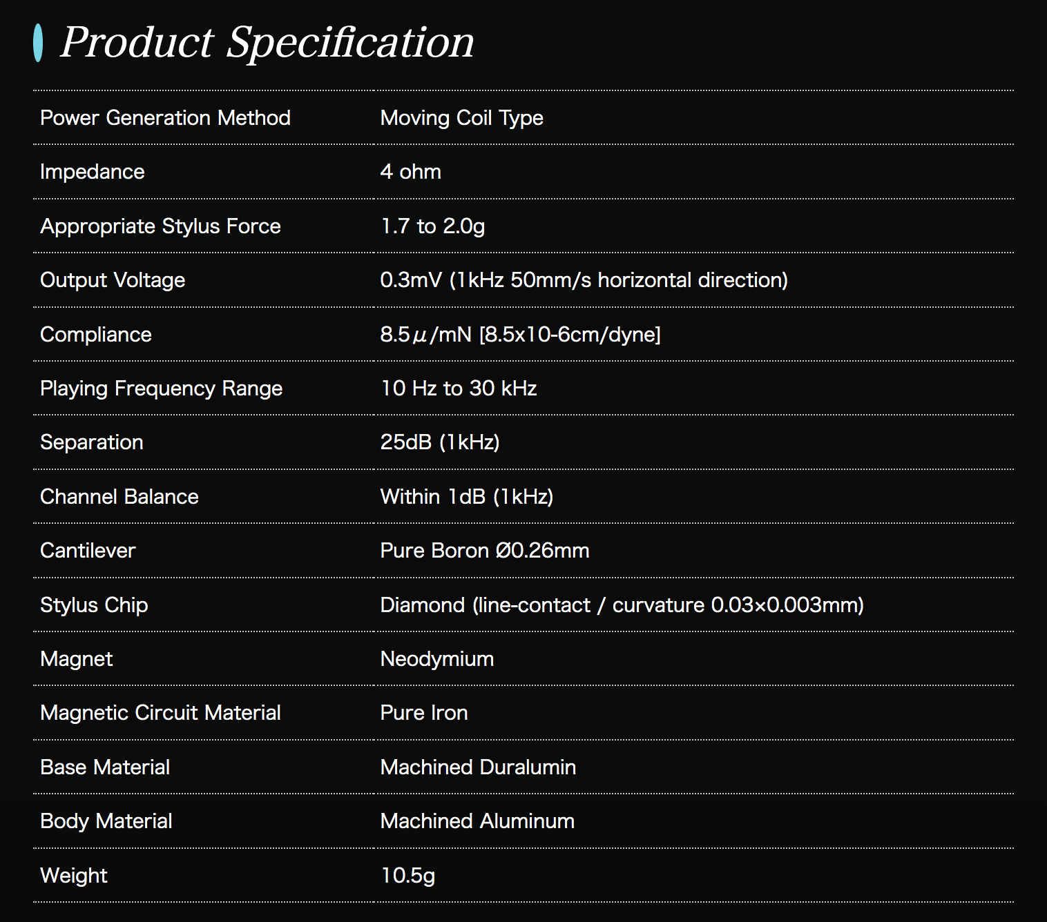 • Appropriate Stylus Force 1.7 to 2.0 g