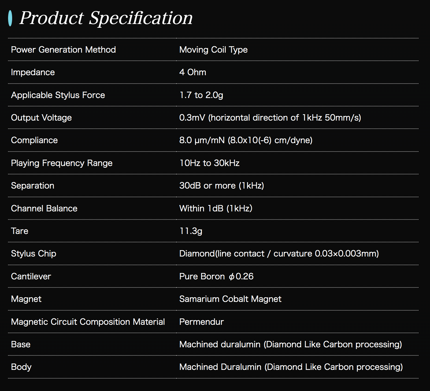 • Product MC CARTRIDGES (Low Output)