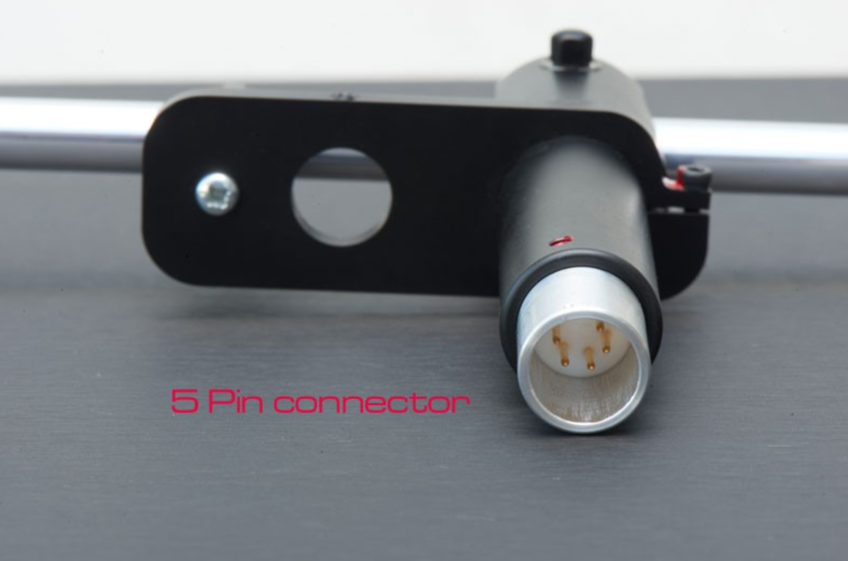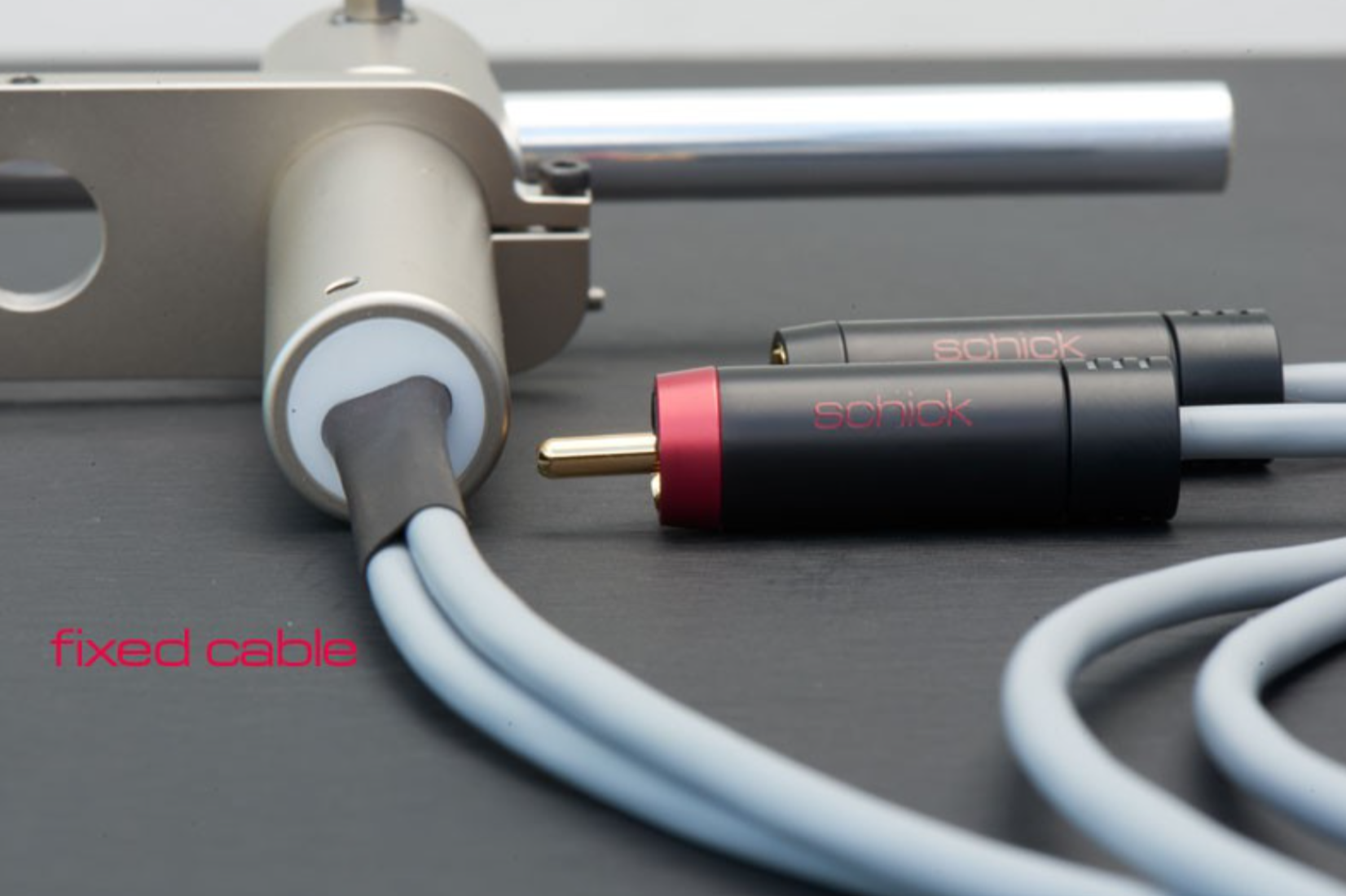 The arm has a 5 pin tonearm connector. It consists of a Teflon isolator and electronic test pins. Else, you can choose a fixed tonearm cable, with lowest resistance and capacitance, symmetrical cable with schick RCA plugs. The cable is 1,1m long.